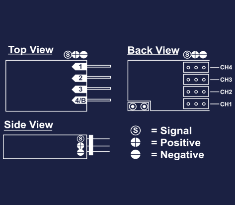 ![]() The BMR Series receiver is even smaller and lighter than the previous version. This full-range, the receiver has push upon power up, the receiver learns the characteristics of your transmitter like positive (JR/Airtronics) or negative (Futaba/Hitec) shift, number of channels, trigger pulse length and approximate frame rate. Once learned, the receiver locks onto your transmitter and rejects signals from other transmitters that have different characteristics. Finally, it has a programmable fail-safe function. In the event of a signal loss, it can be programmed to hold the last good servo positions, and upon extended signal loss, automatically switch to pre-programmed servo positions that you can set. Automatic lock onto TX signals. Comes with protective plastic shrink wrap Quality crystal holder component (click on image above to see holder) Back-plane used conductive strips, eliminates dead ports from cold solder joints |